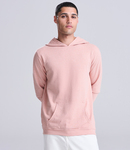 French terry. Drop shoulder style. Fashion fit. Hood with no drawcord. Taped neck. Front pouch pocket.